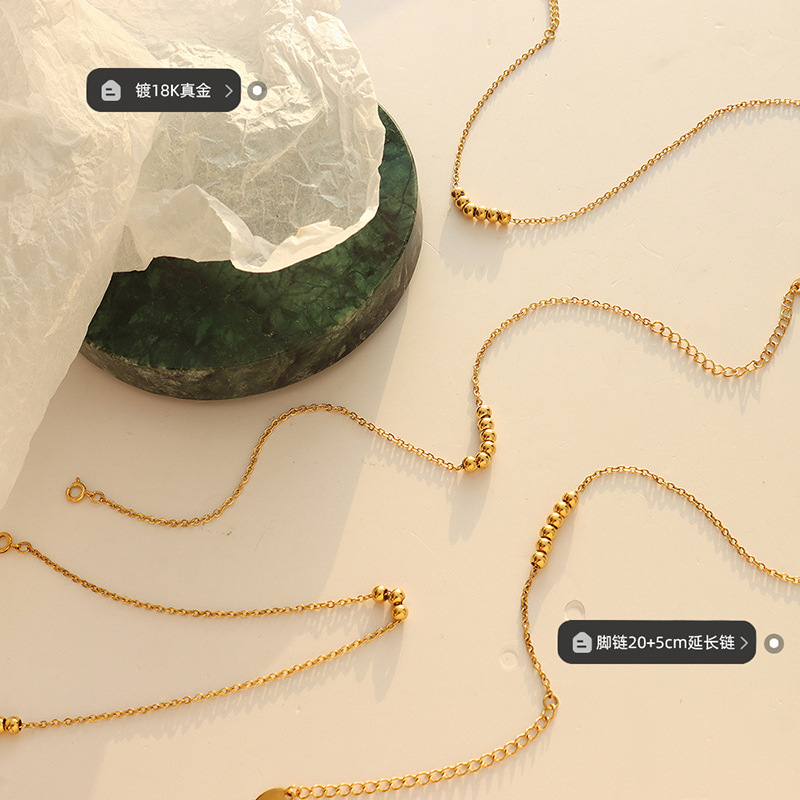 | nameOriginal | Small fragrant wind small beads Joker fashion anklet titanium steel material plated 18K gold high quality foot decoration factory wholesale |