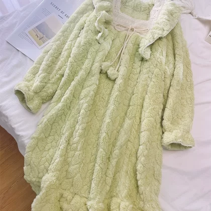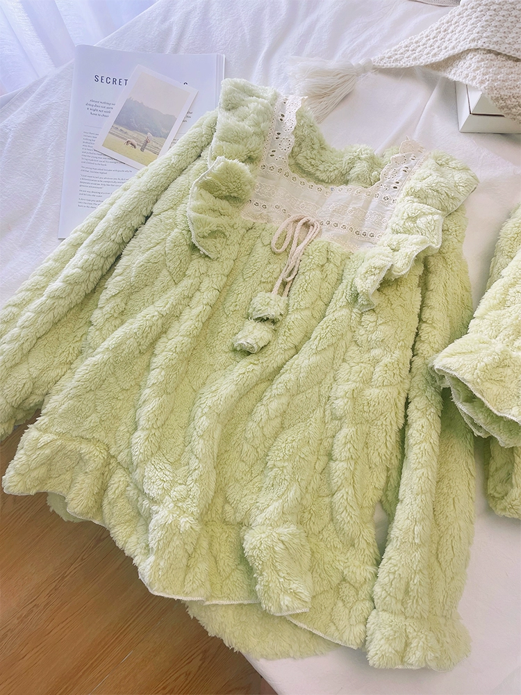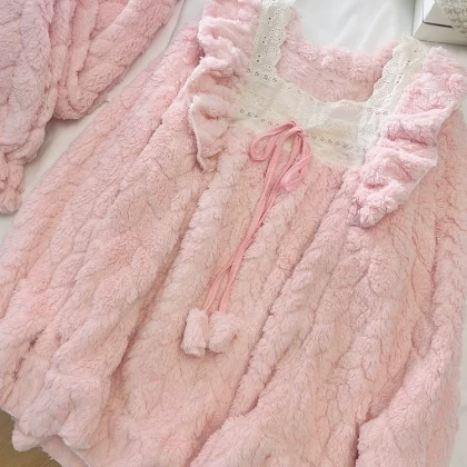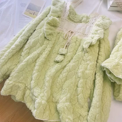 Small fresh 2023 new girls coral velvet large size pajamas for women winter plus velvet thickened flannel home clothes