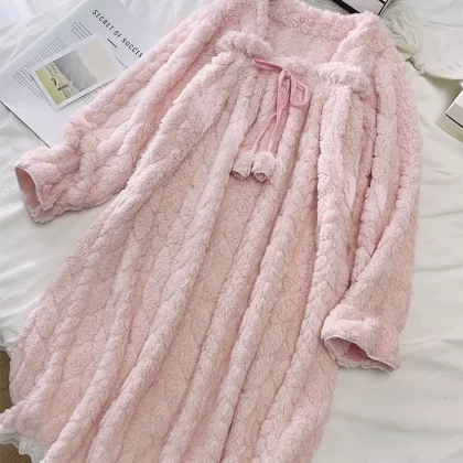Xiaolongxin 2023 new girl coral velvet big size pajamas women winter plus velvet thick flange home service