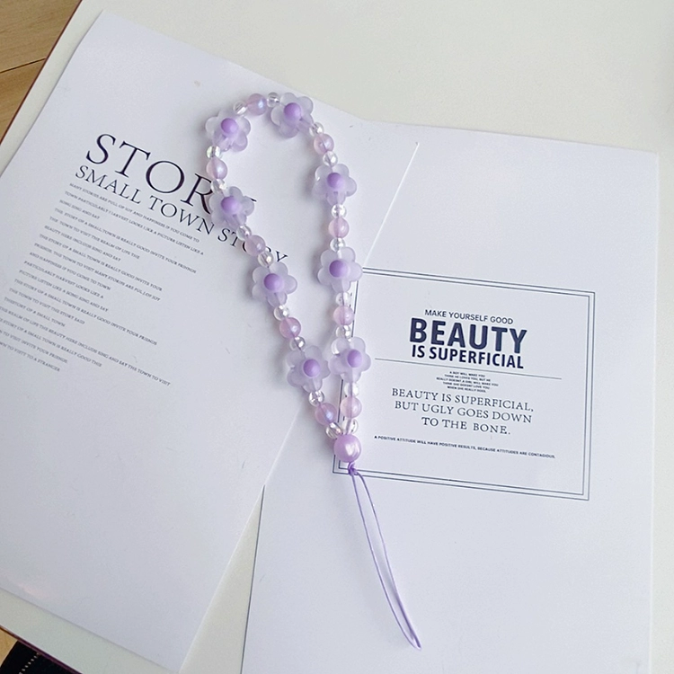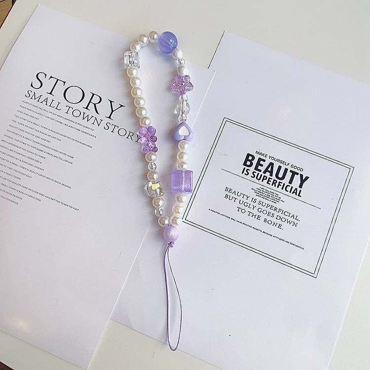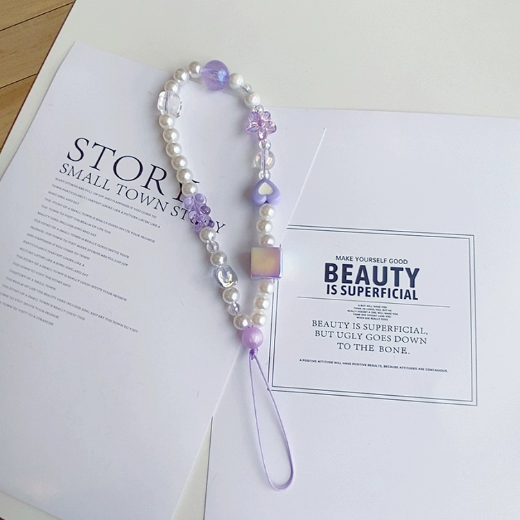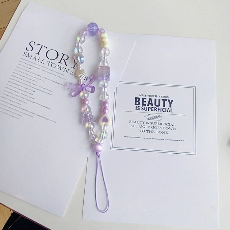 Small fresh and dreamy purple mobile phone lanyard hand-made beaded CCD camera pendant chain U disk card album wrist strap anti-lost rope