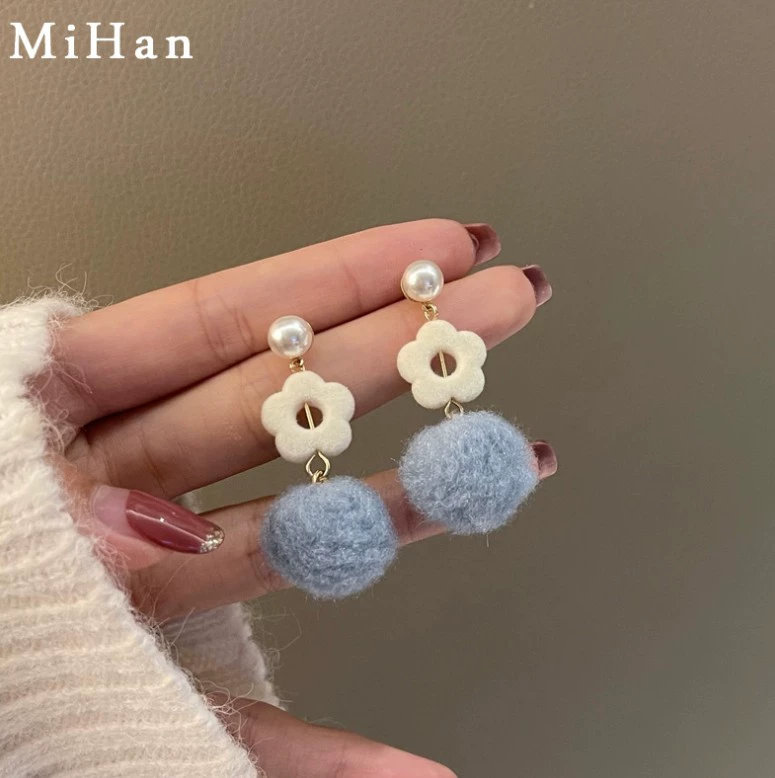 Small fresh and personalized contrasting color ear jewelry plush silver needle