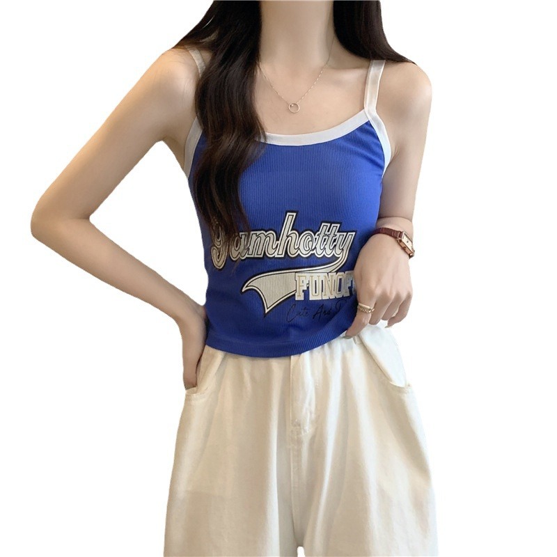 Small fresh bottoming top with chest pad contrast color slimming trendy summer printed new inner wear simple camisole slim vest