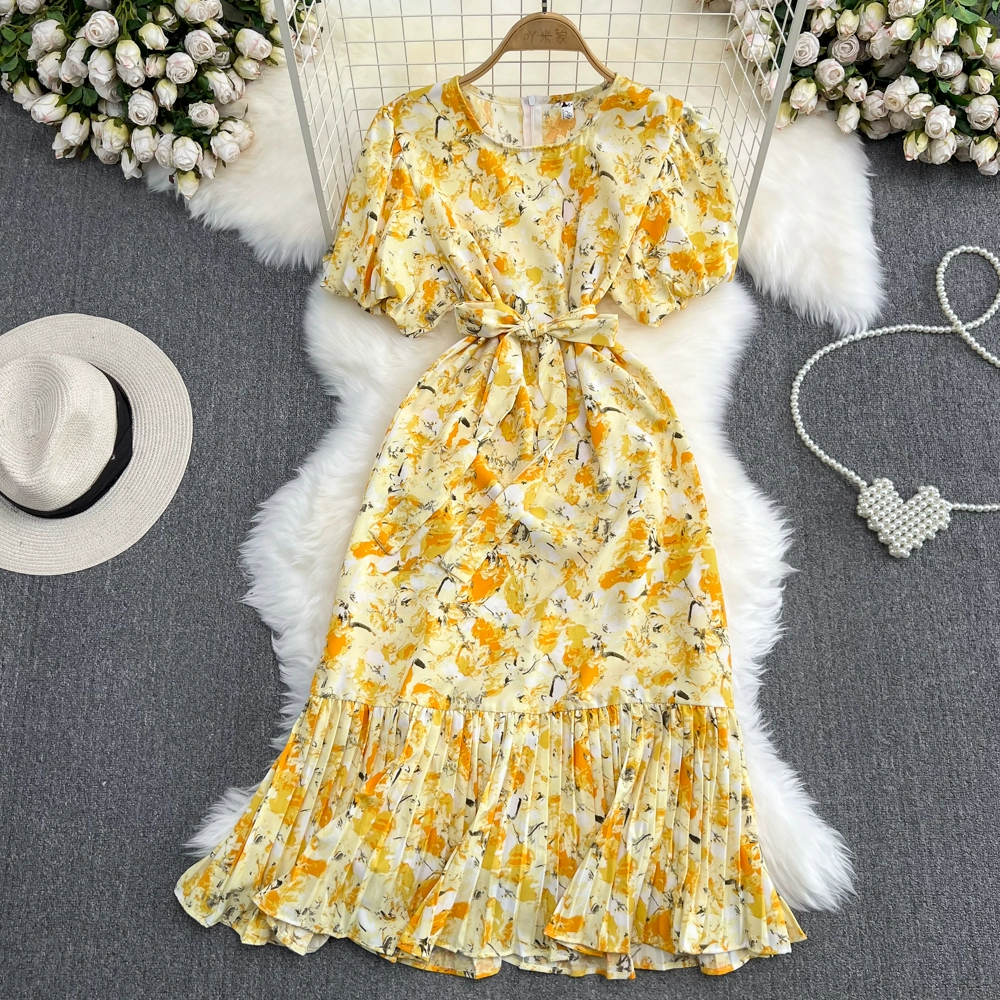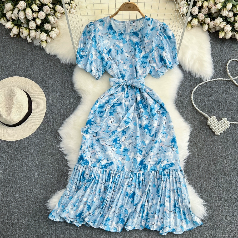 | nameOriginal | Small fresh bubble a line ruffle dress short sleeves |