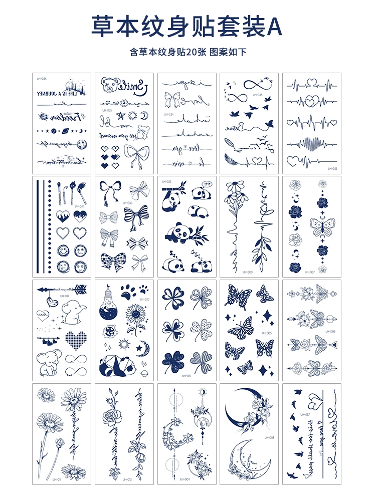 Small fresh juice herbal tattoo stickers waterproof female long-lasting simulation semi-permanent flower butterfly tattoo stickers for men