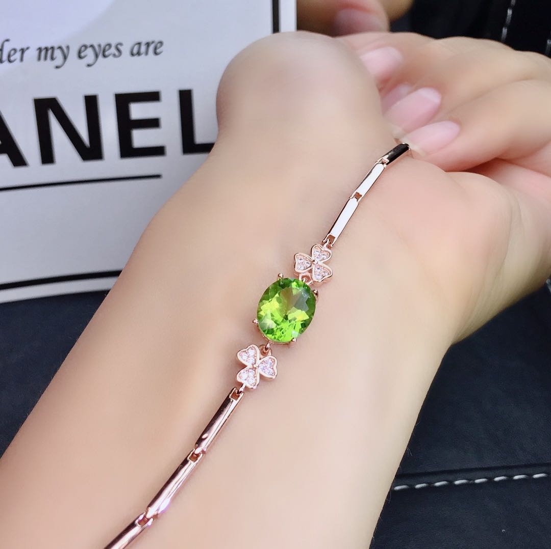 | nameOriginal | Small fresh natural peridot bracelet Stone 8*10mm large particles 925 silver plated rose gold olive bracelet |