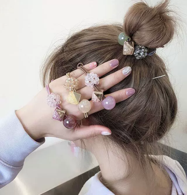 Small fresh pearl ball Mori girl rubber band hair rope rhinestones