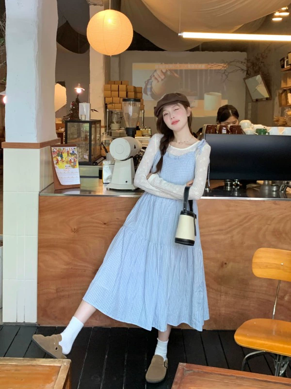 | nameOriginal | Small fresh plaid slimming and age-reducing suspender dress |