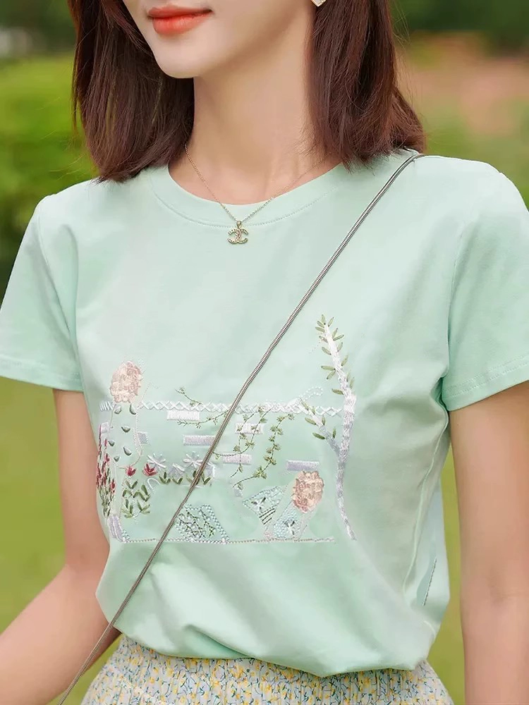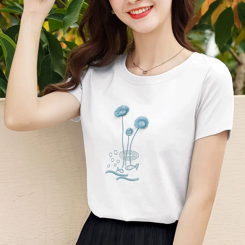 | nameOriginal | Small fresh pure cotton short-sleeved butterfly age-reducing casual embroidery |