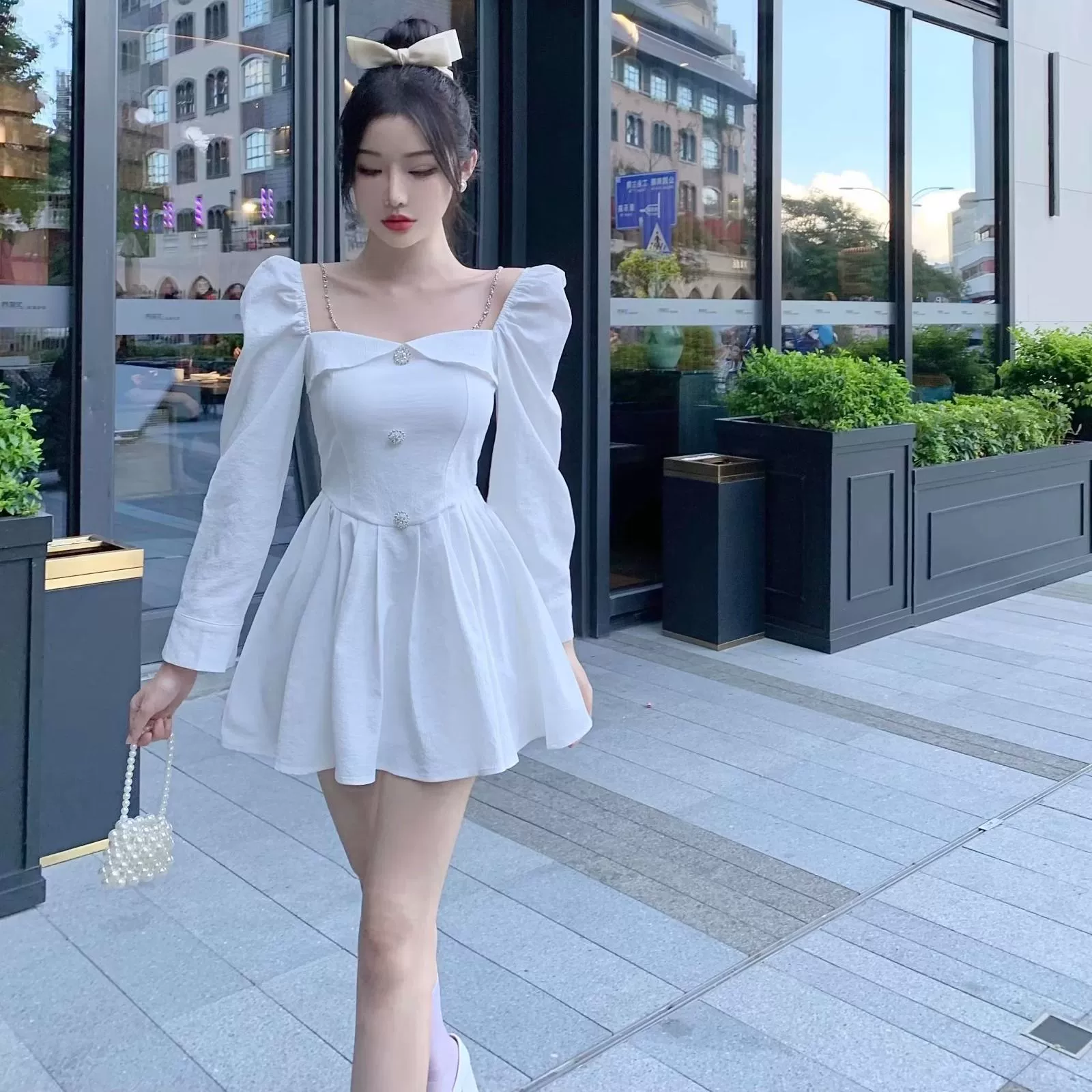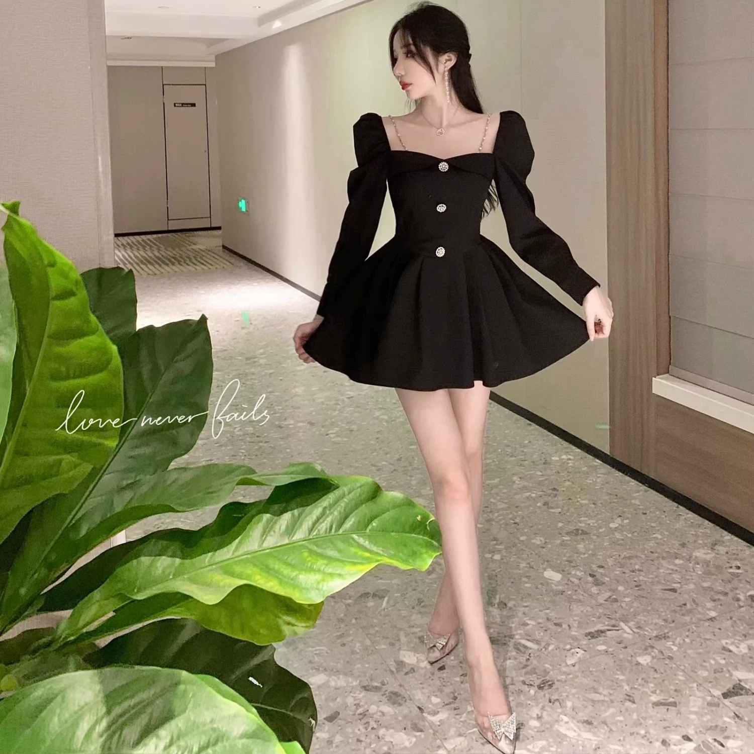| nameOriginal | Small fresh retro square collar spring and autumn waist dress |