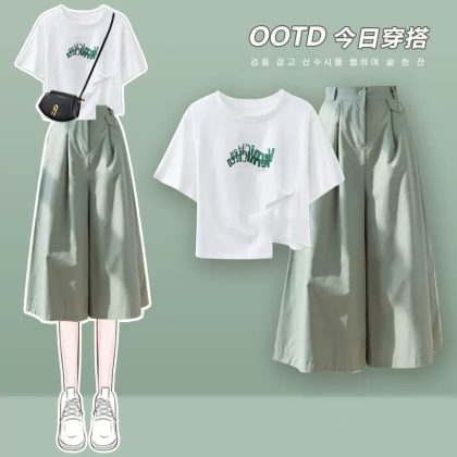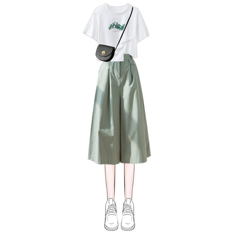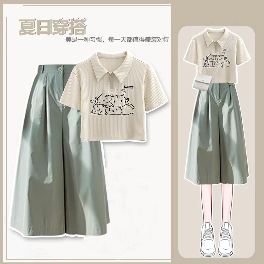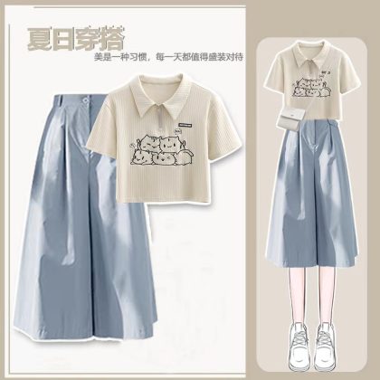 | nameOriginal | Small Fresh Style Cropped Wide-leg Pants Set Women's Summer New Slight Fat Slimming Small High-end Pants Two-piece Set |