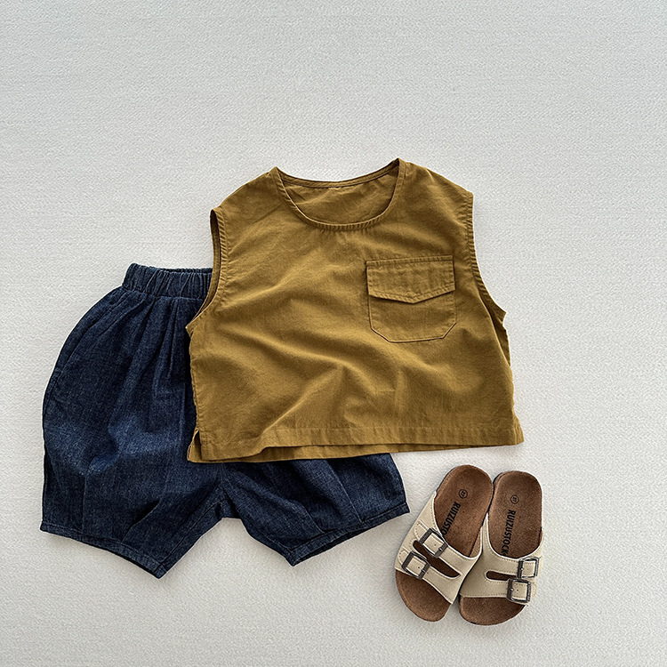 | nameOriginal | Small Fresh Style Korean Style Summer New Children's Sleeveless Solid Color Outer Wear Vest for Boys and Girls Baby Summer Mori Top |