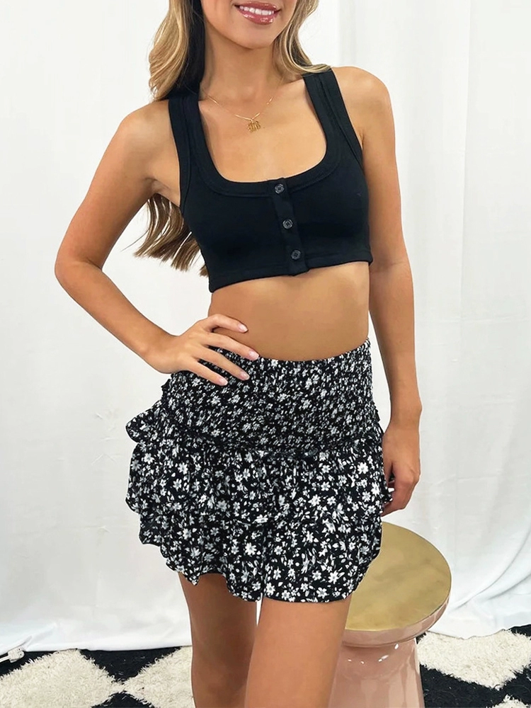 | nameOriginal | Small fresh temperament floral slimming solid color skirt 2024 summer new high waist ruffled A-line short skirt trendy |