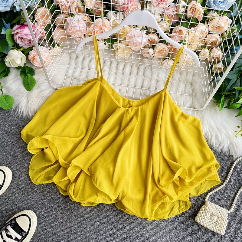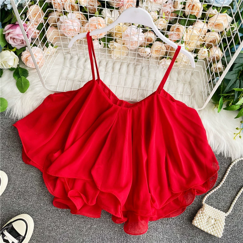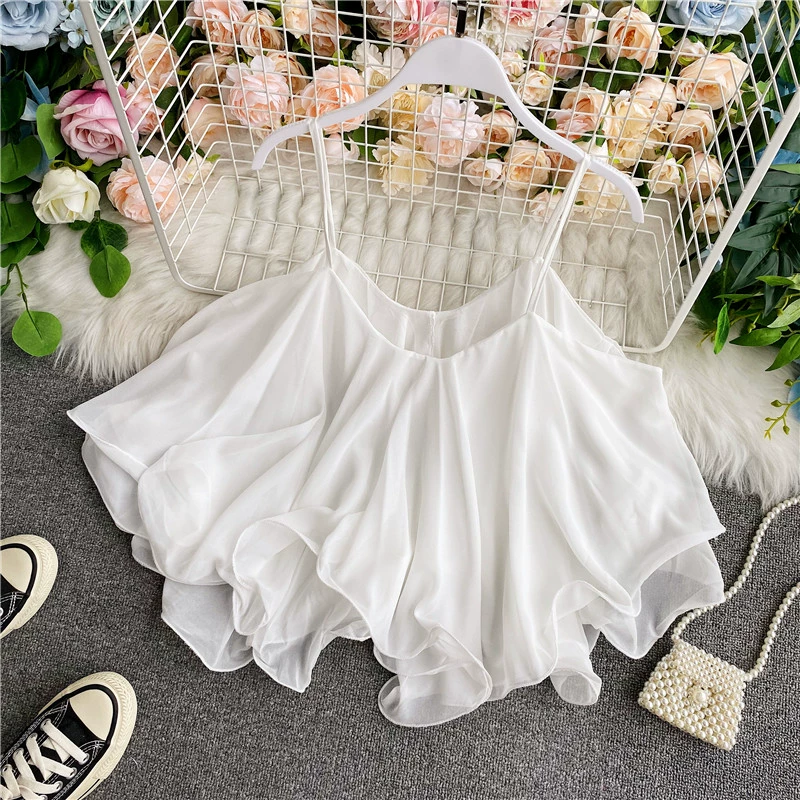 | nameOriginal | Small fresh v-neck ruffle top sleeveless suspender |