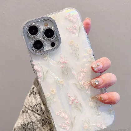 Small fresh wind chime flower suitable for Apple 15 14promax mobile phone case shell pattern flower Huawei P60 P70 new iPhone13 12 11pro creative women’s glitter lens protection