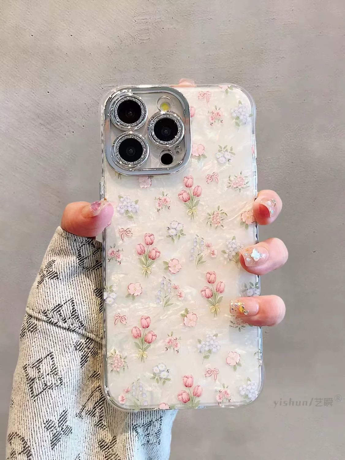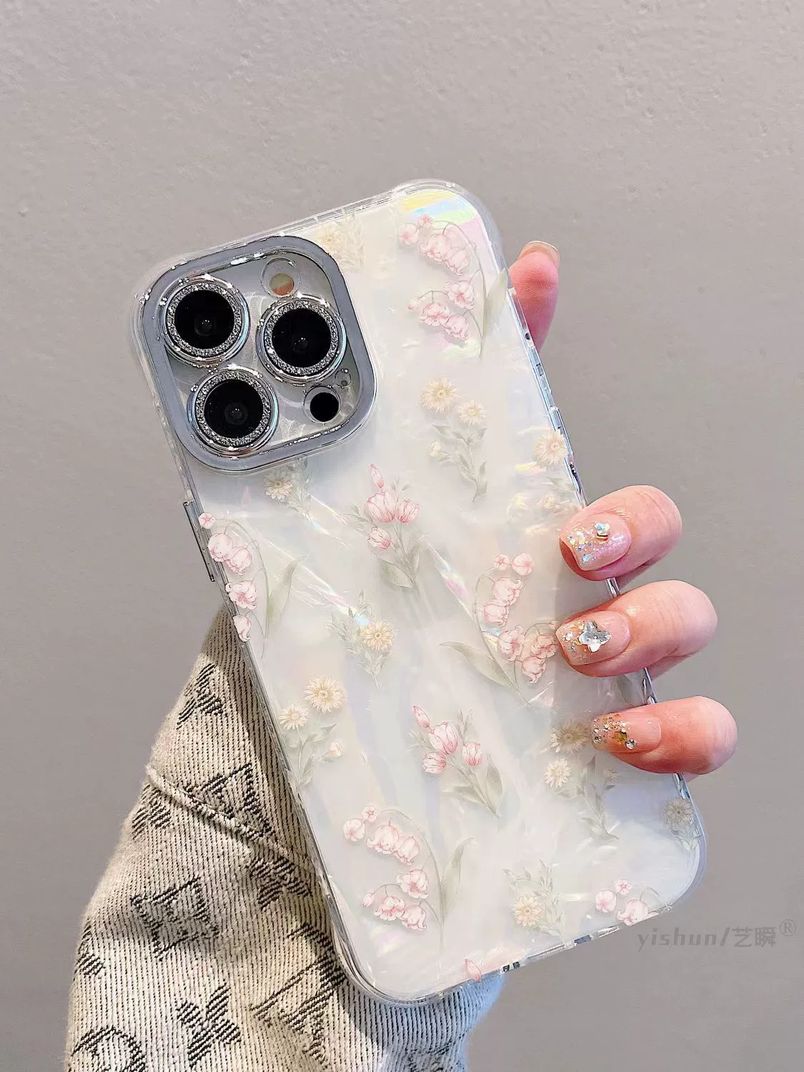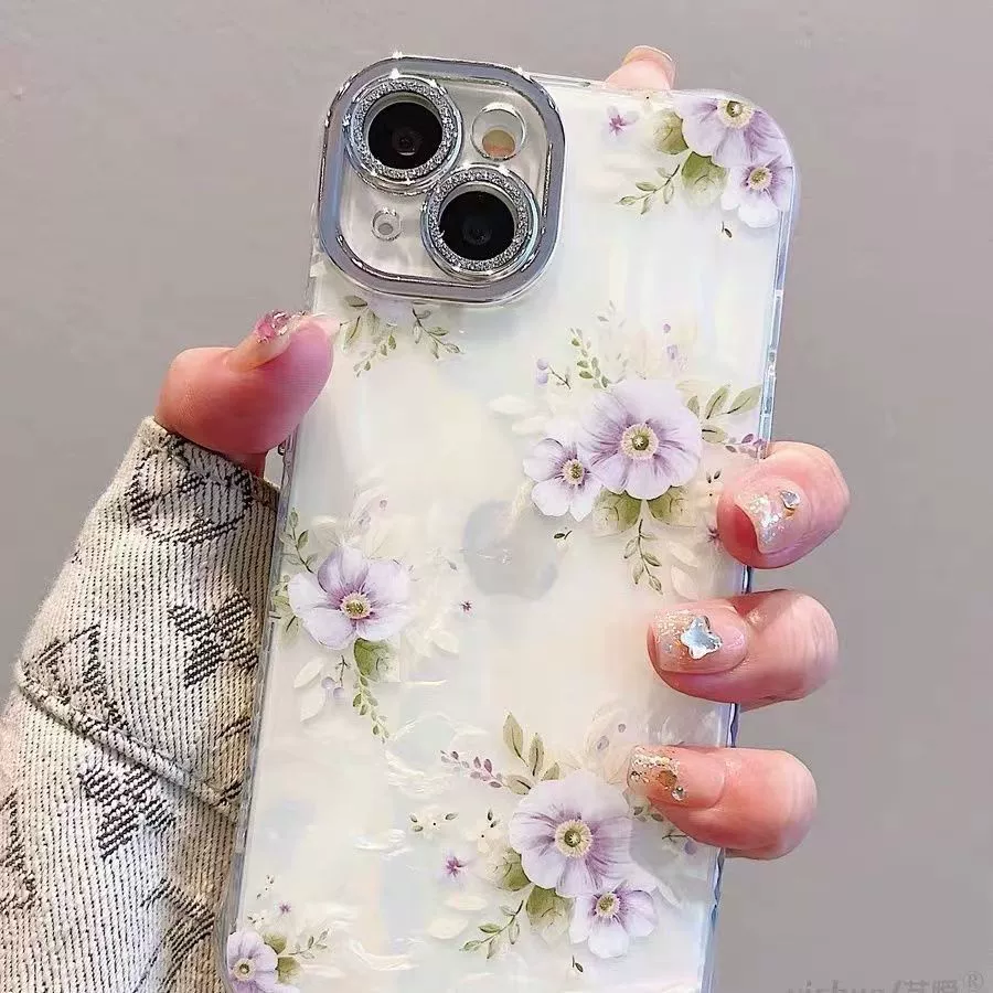 Small fresh wind chime flower suitable for Apple 15 14promax mobile phone case shell pattern flower Huawei P60 P70 new iPhone13 12 11pro creative women's glitter lens protection