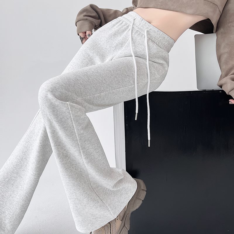 Small Gray Pants Sports Pants Women's Spring and Autumn New High Waist Slimming Trumpet Casual Pants 2024 Micro Horseshoe for Summer