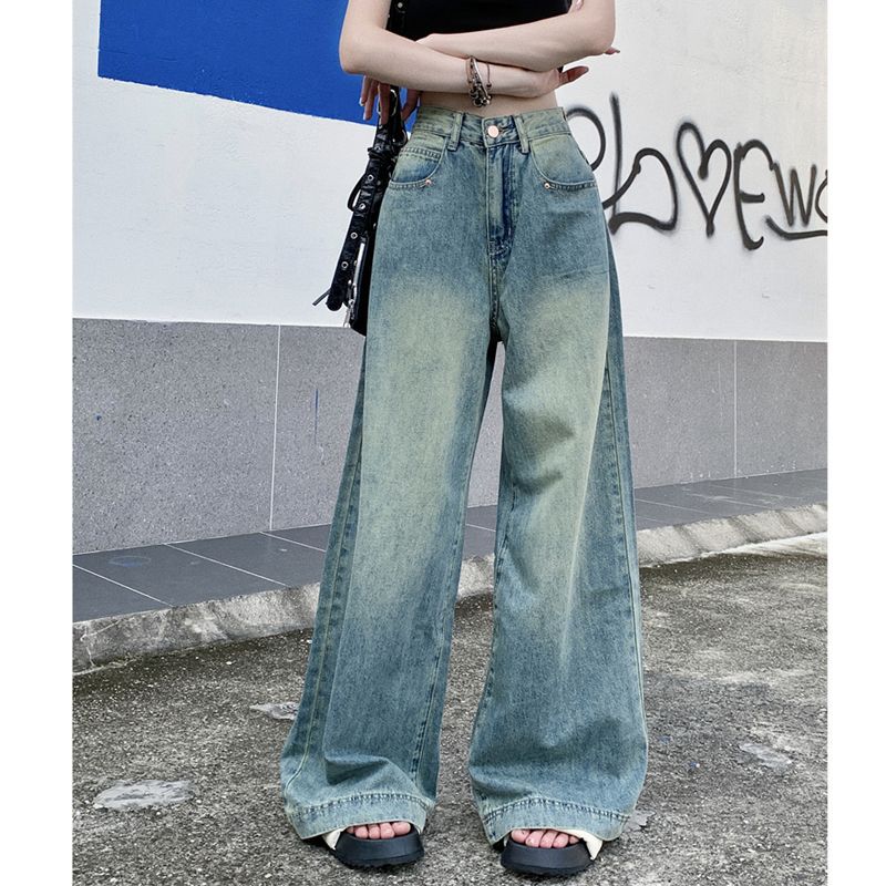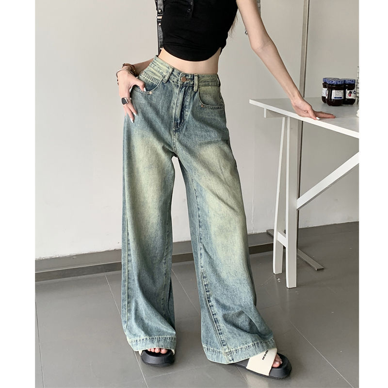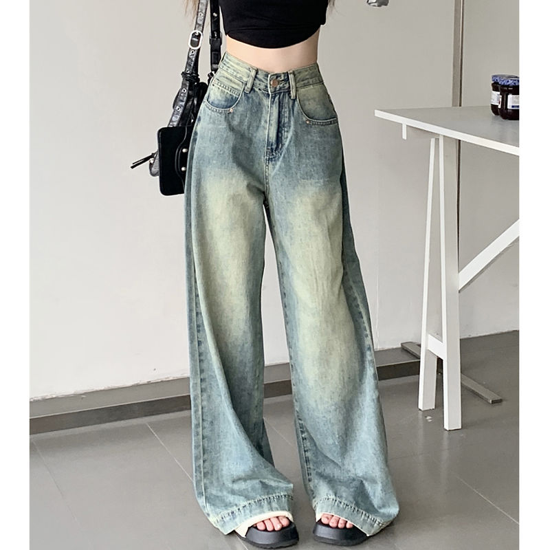 Small High Waist Loose Jeans Women’s Summer New Retro Slimming Dad Pants Draped Wide Leg Pants Trendy Pants