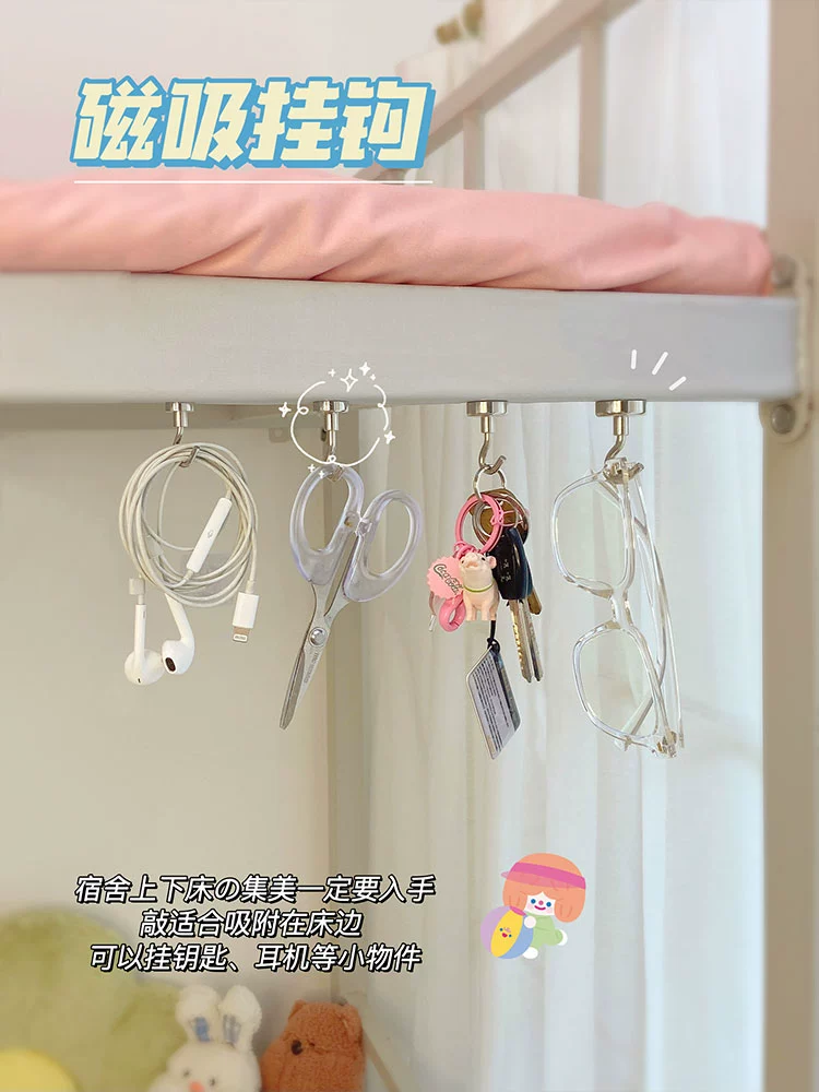 Small items are always at your fingertips! Magnetic hook, powerful magnet, refrigerator hook, dormitory upper bunk key storage artifact