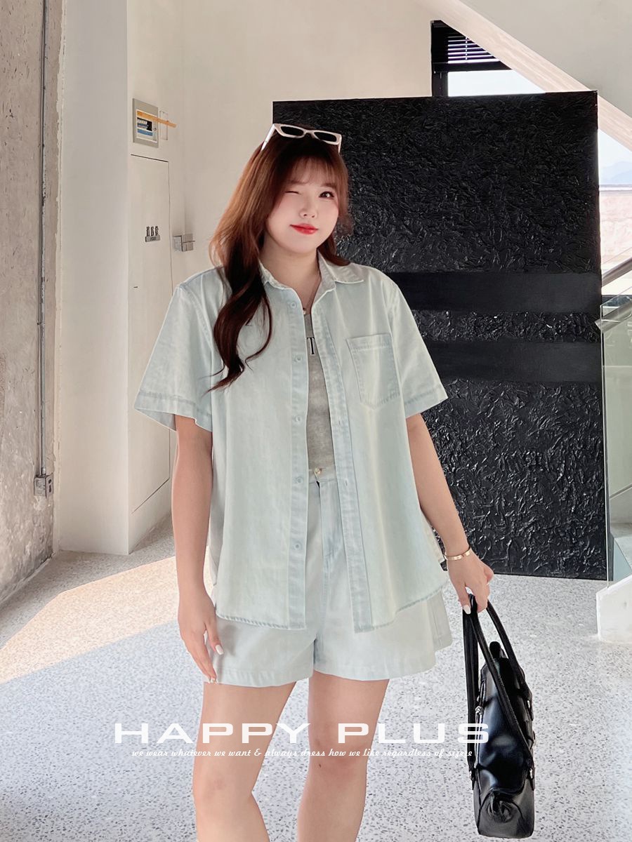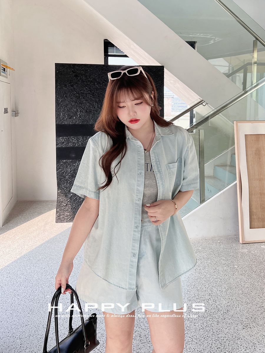 | nameOriginal | Small lapel washed thin Denim shirt wide leg shorts suit moisturizing its 8681 plus size women's casual thin denim cover |