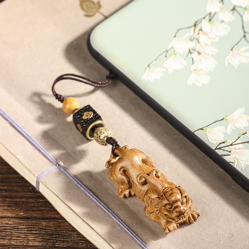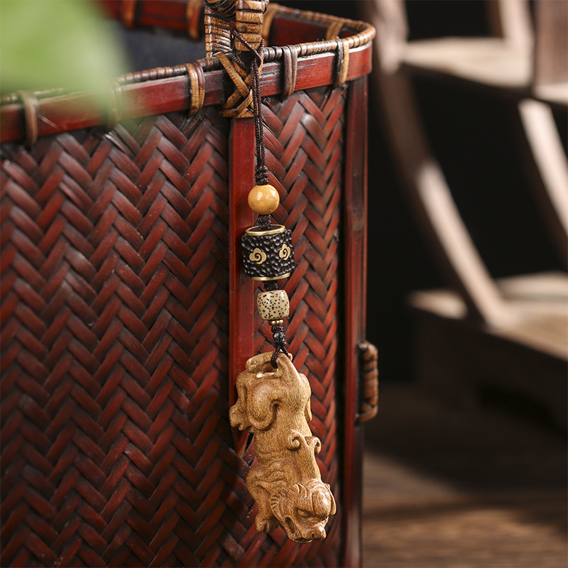 | nameOriginal | Small leaf Golden Sinan wood carving brave car car key chain pendant hand woven mobile phone chain car key pendant gift |
