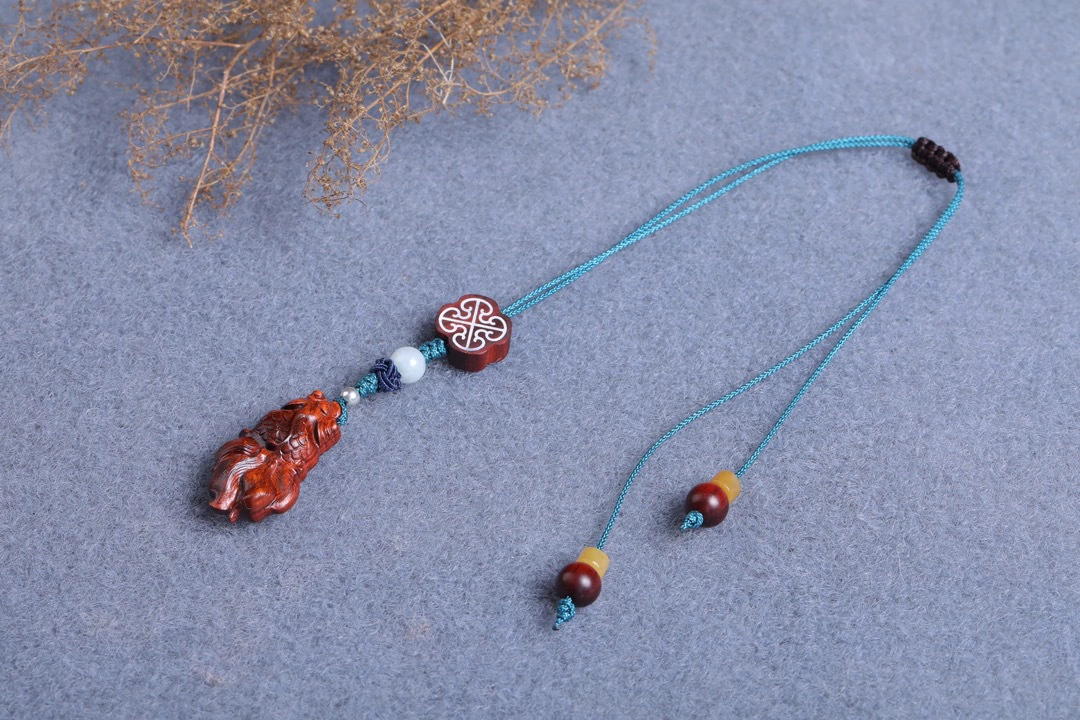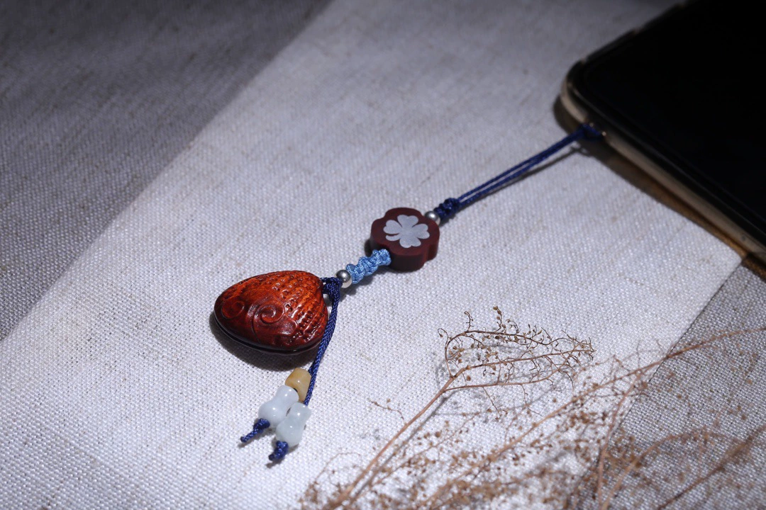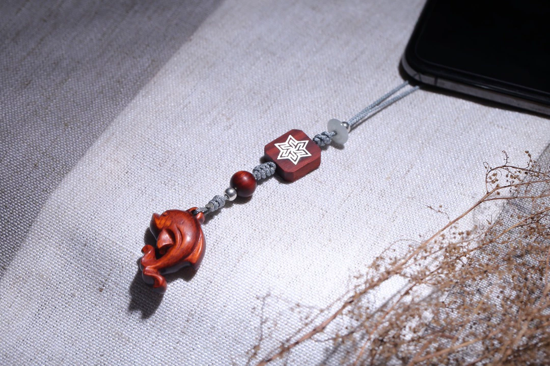 | nameOriginal | Small leaf red sandalwood pig official dolphin vajra pestle mobile phone bag accessories mahogany key pendant pendant with tassel |