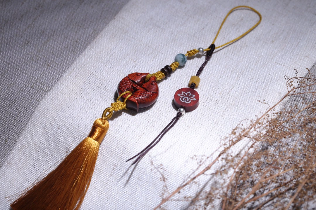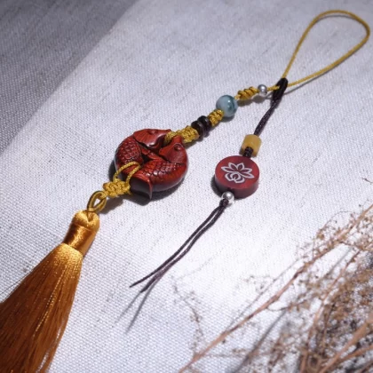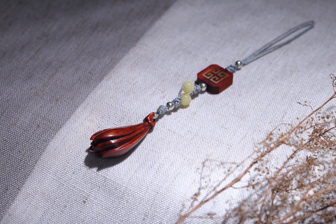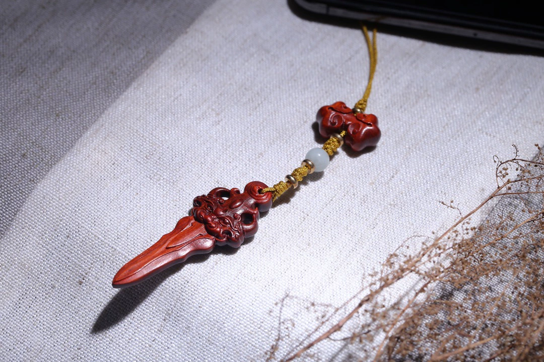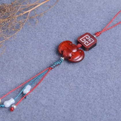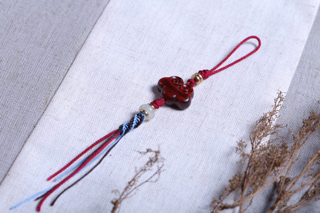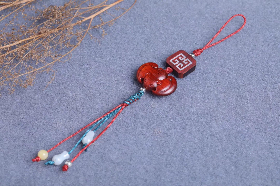 | nameOriginal | Small leaf red sandalwood pig official dolphin vajra pestle mobile phone bag accessories mahogany key pendant pendant with tassel |
