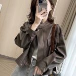 Small Leather Women’s Coat 2024 New Spring and Autumn Korean Style Loose Casual Hong Kong Style Retro Short PU Motorcycle Jacket Trendy