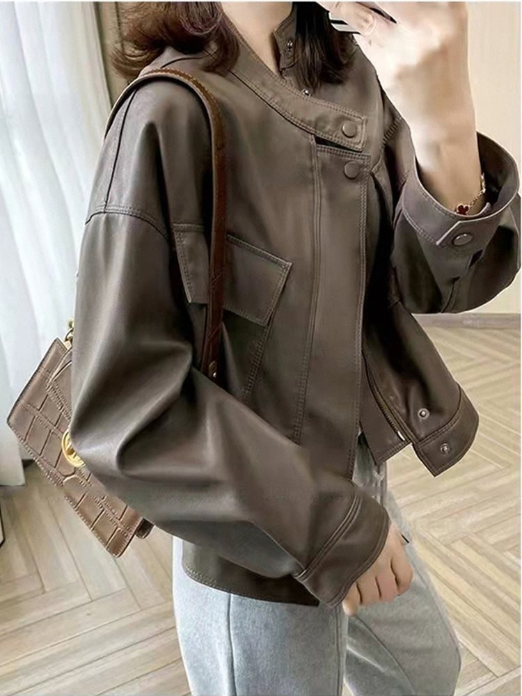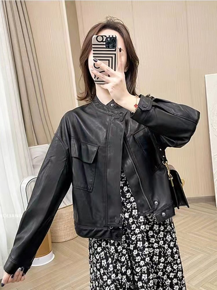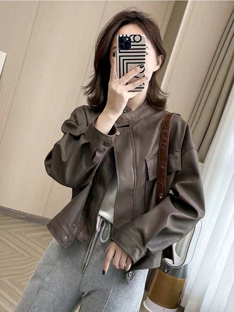 Small Leather Women's Coat 2024 New Spring and Autumn Korean Style Loose Casual Hong Kong Style Retro Short PU Motorcycle Jacket Trendy