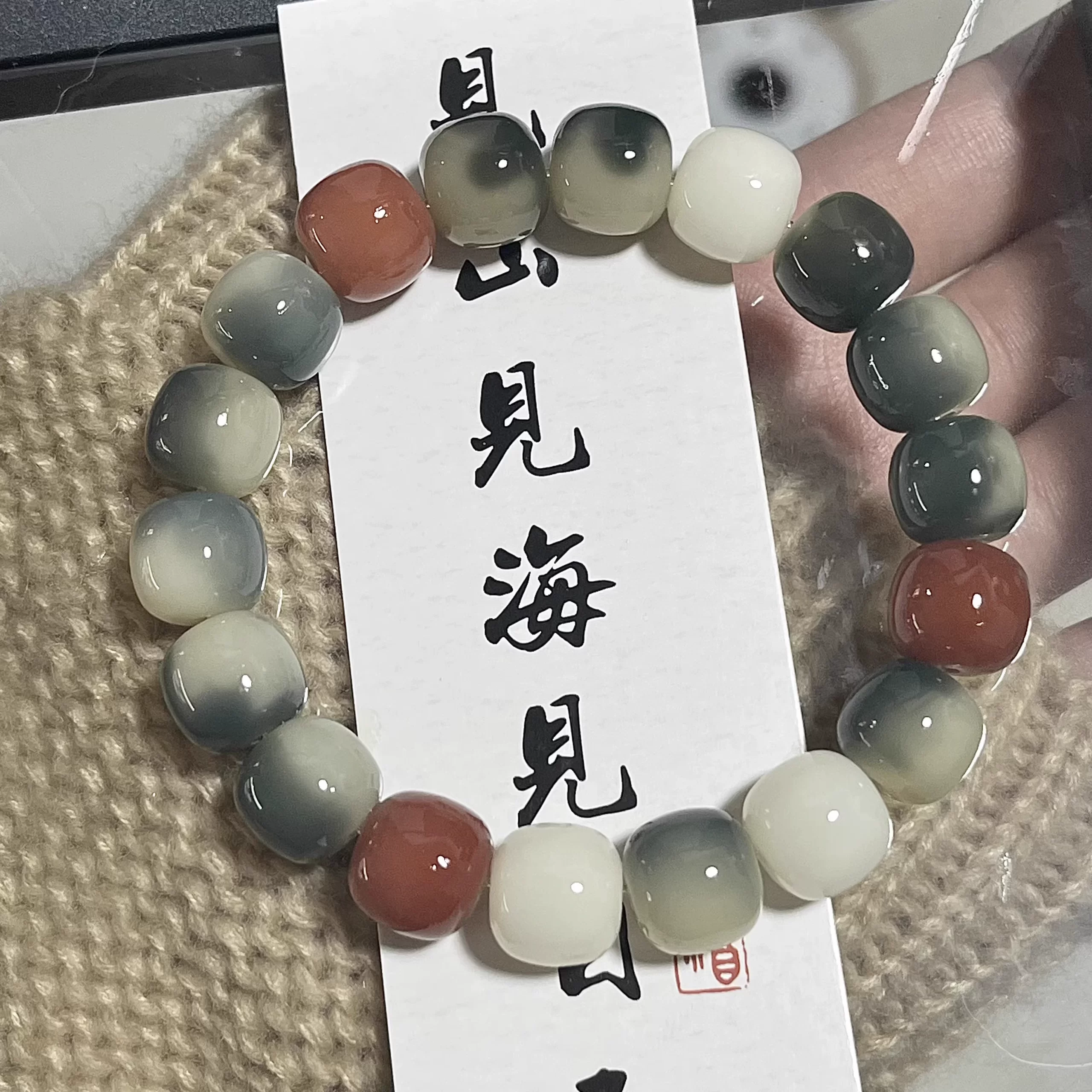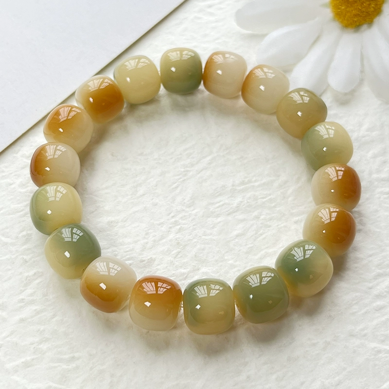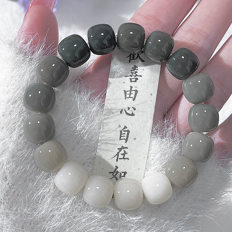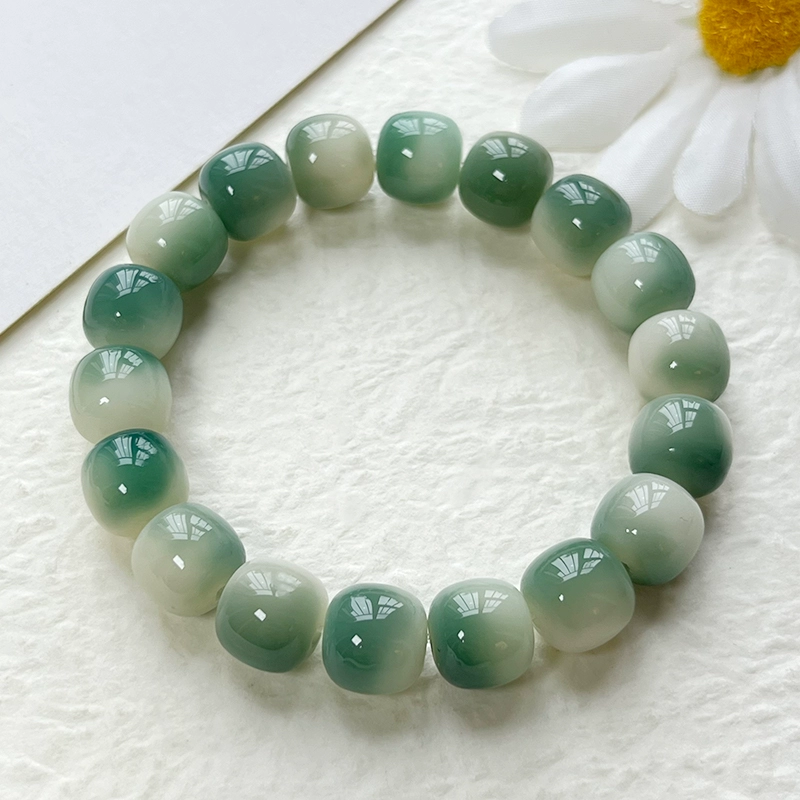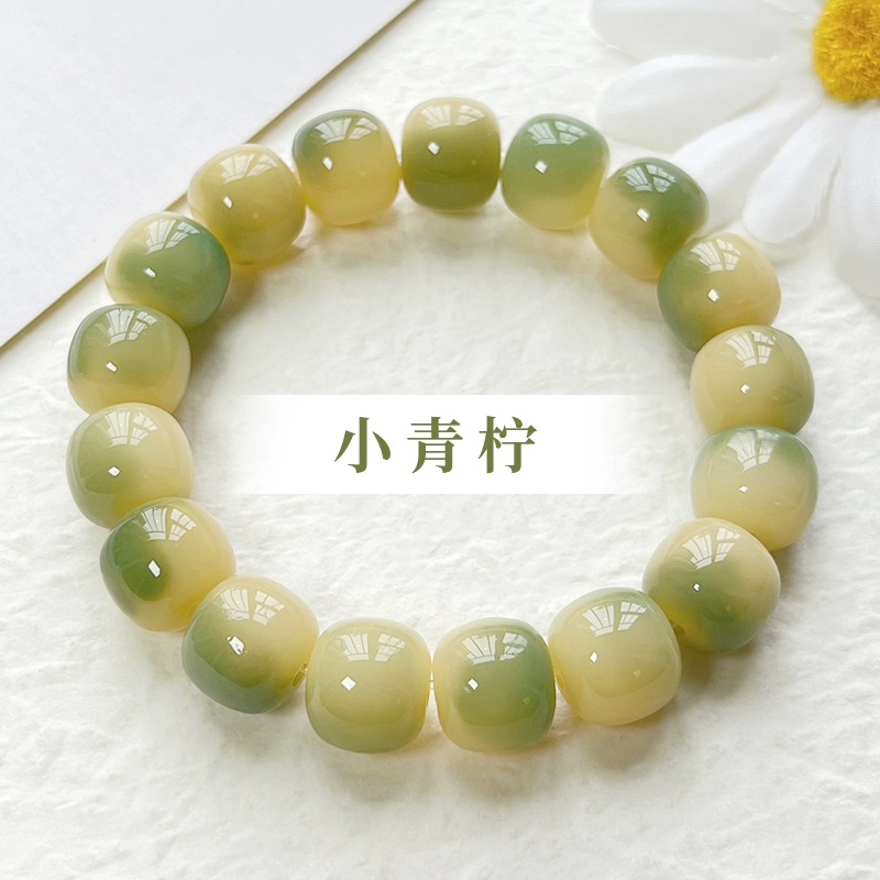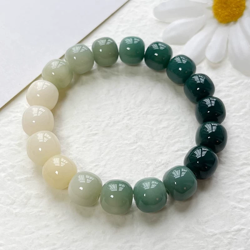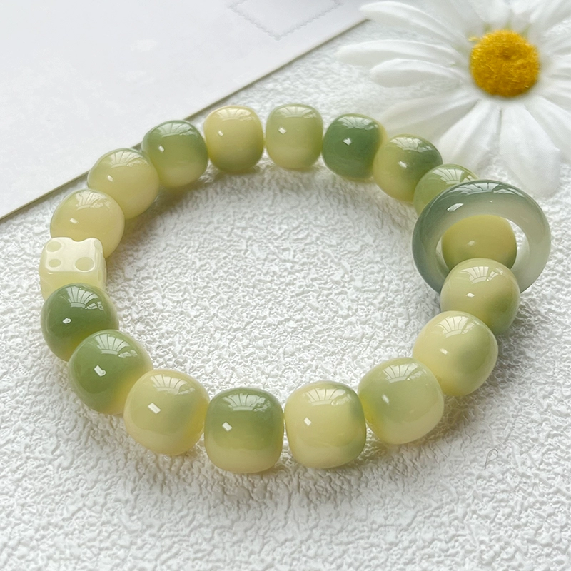 Small lime and white jade bodhi root bracelets for female students to play with and around their fingers, bodhi seed bead bracelets for men, and rosary beads
