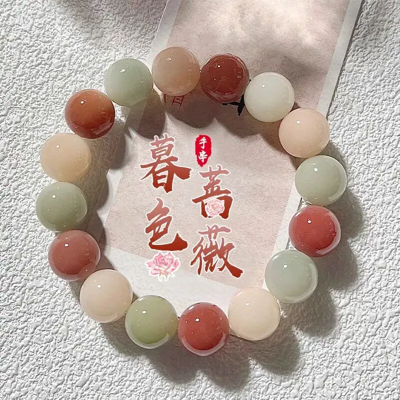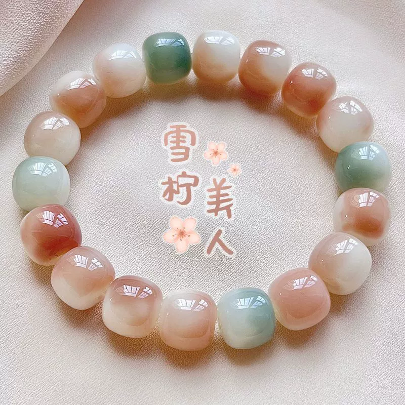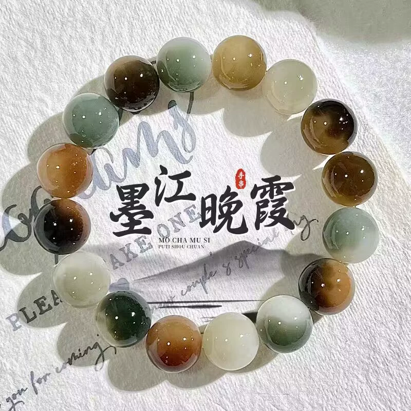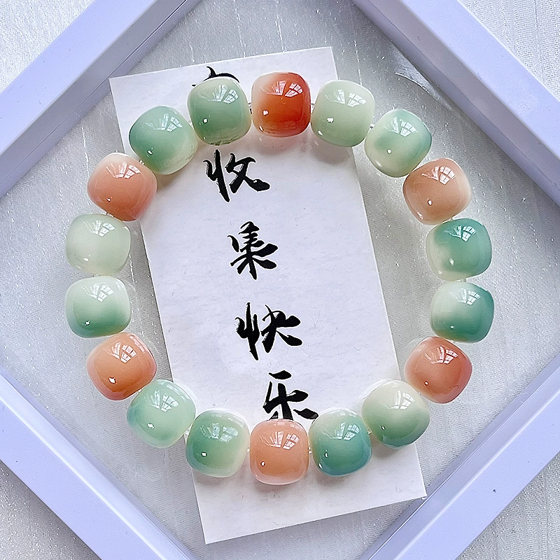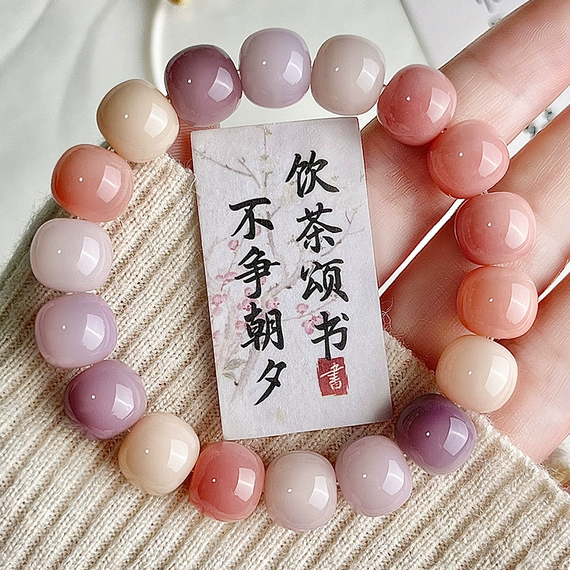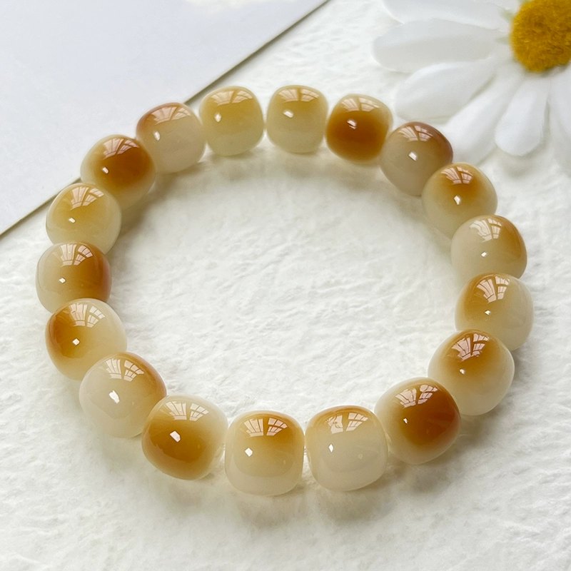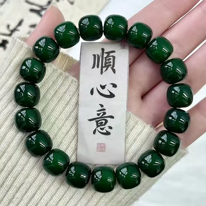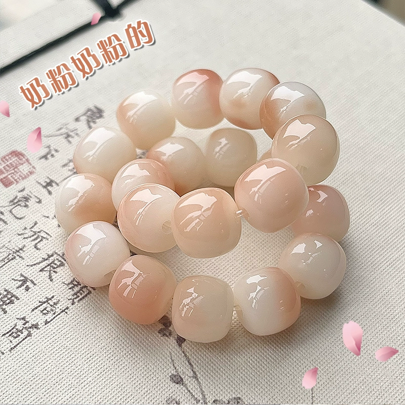 Small lime and white jade bodhi root bracelets for female students to play with and around their fingers, bodhi seed bead bracelets for men, and rosary beads