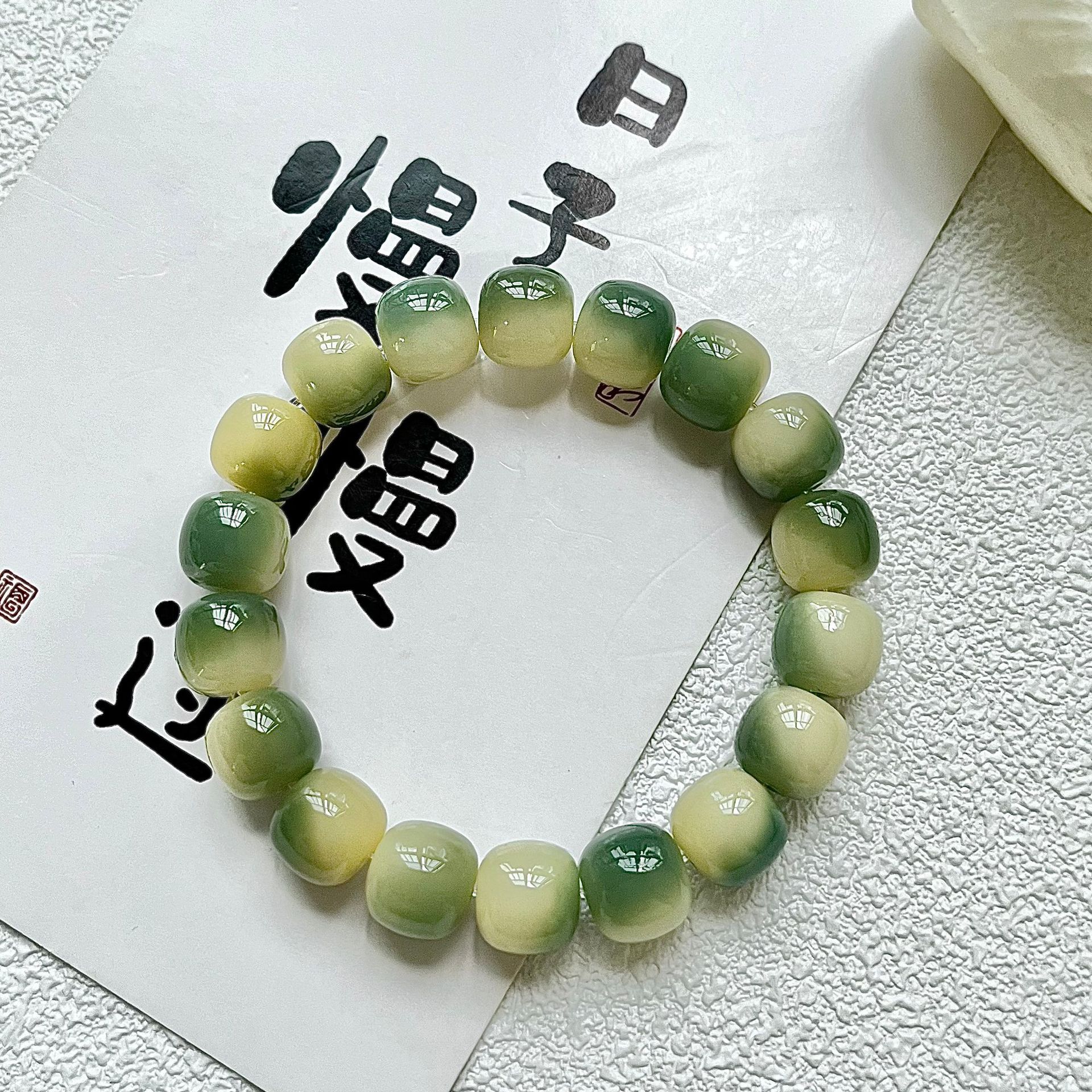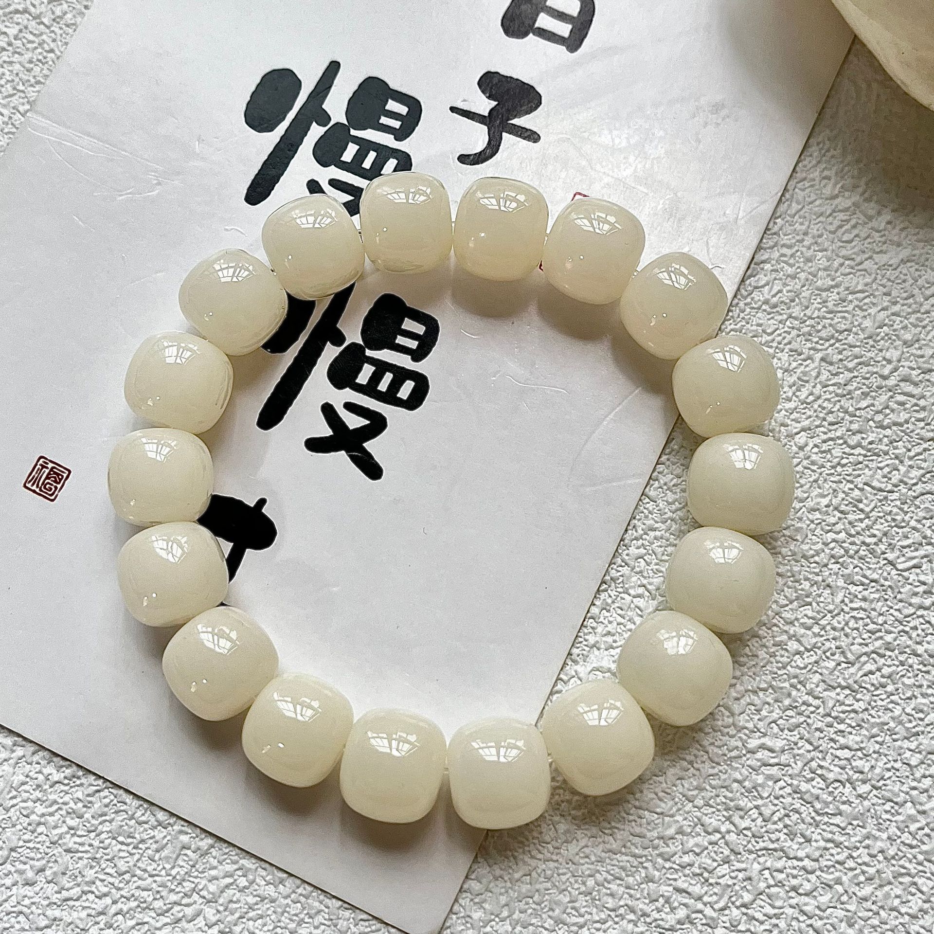 | nameOriginal | Small lime white jade Bodhi root bracelet plate playing around the fingers soft female student Wenwan Bodhi Buddha beads bracelet male rosary |