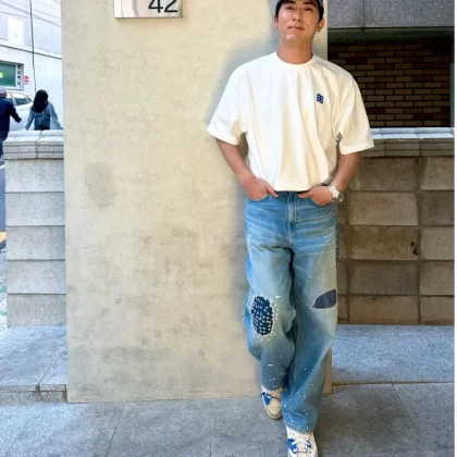nameOriginal | Small logo ader letter embroidered T-shirt, same style for men and women, round neck short sleeves |