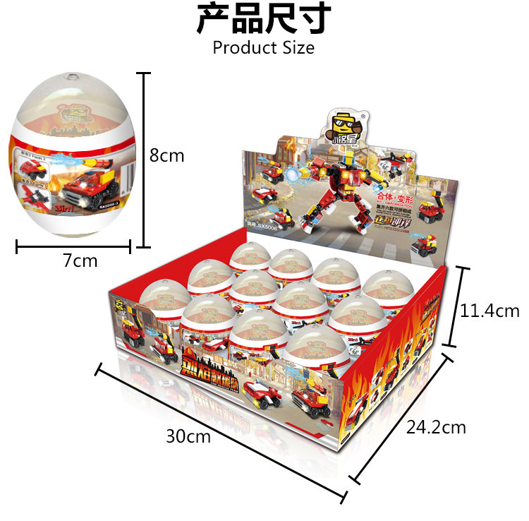 | nameOriginal | Small Mingxing building blocks twisted egg SX5006 rescue team assembled small particle building blocks Fire Brigade educational deformation toy egg |