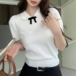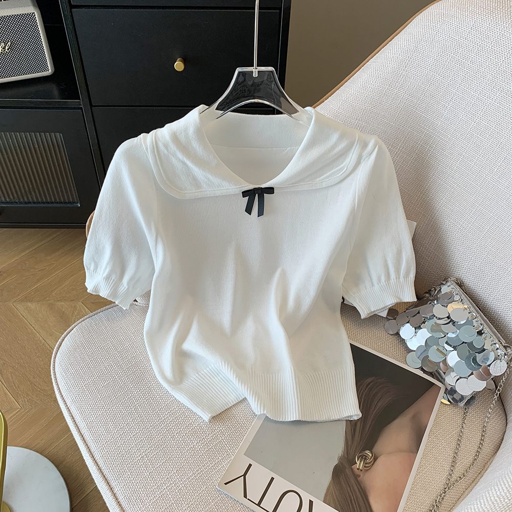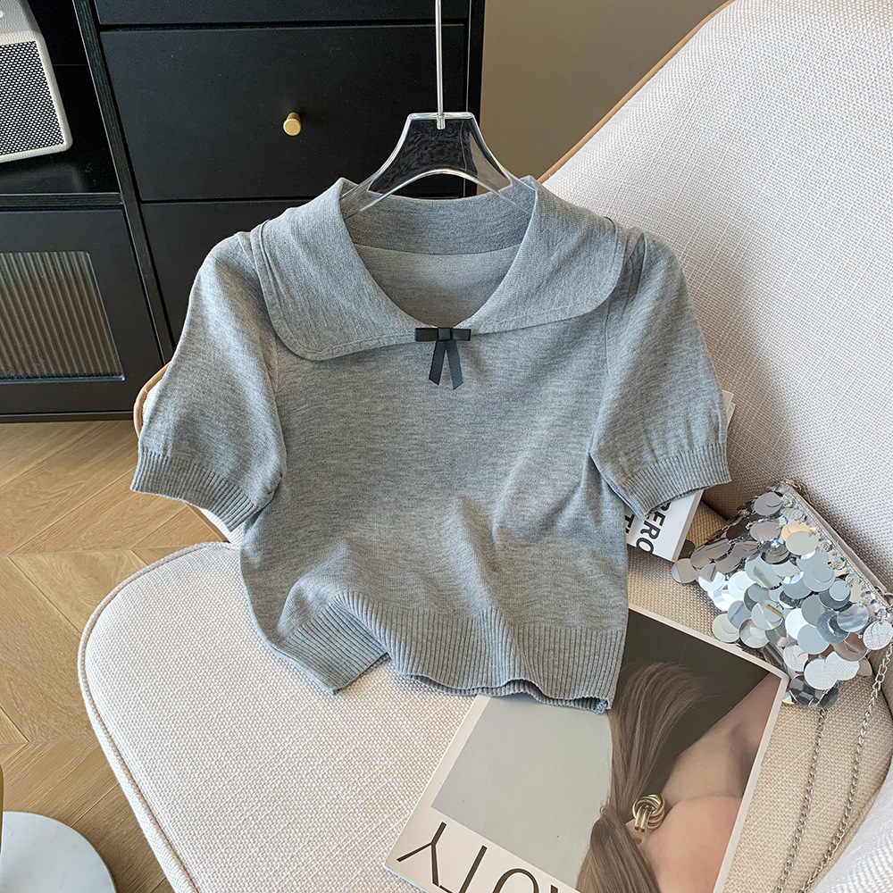 Small miu in miu gas darling bow short sleeve sweater short sweet pullover top