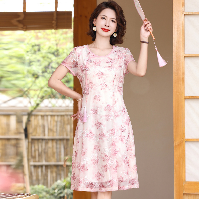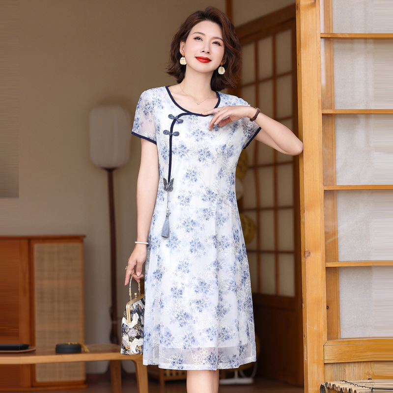 Small Mother Summer Dress Improved Cheongsam dress Stylish Noble Middle-aged and Elderly Women's Retro Dress Summer New Style
