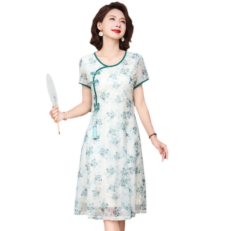 Small Mother Summer Dress Improved Cheongsam dress Stylish Noble Middle-aged and Elderly Women’s Retro Dress Summer New Style