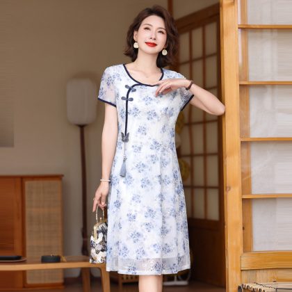 Small Mother Summer Dress Improved Cheongsam dress Stylish Noble Middle-aged and Elderly Women’s Retro Dress Summer New Style