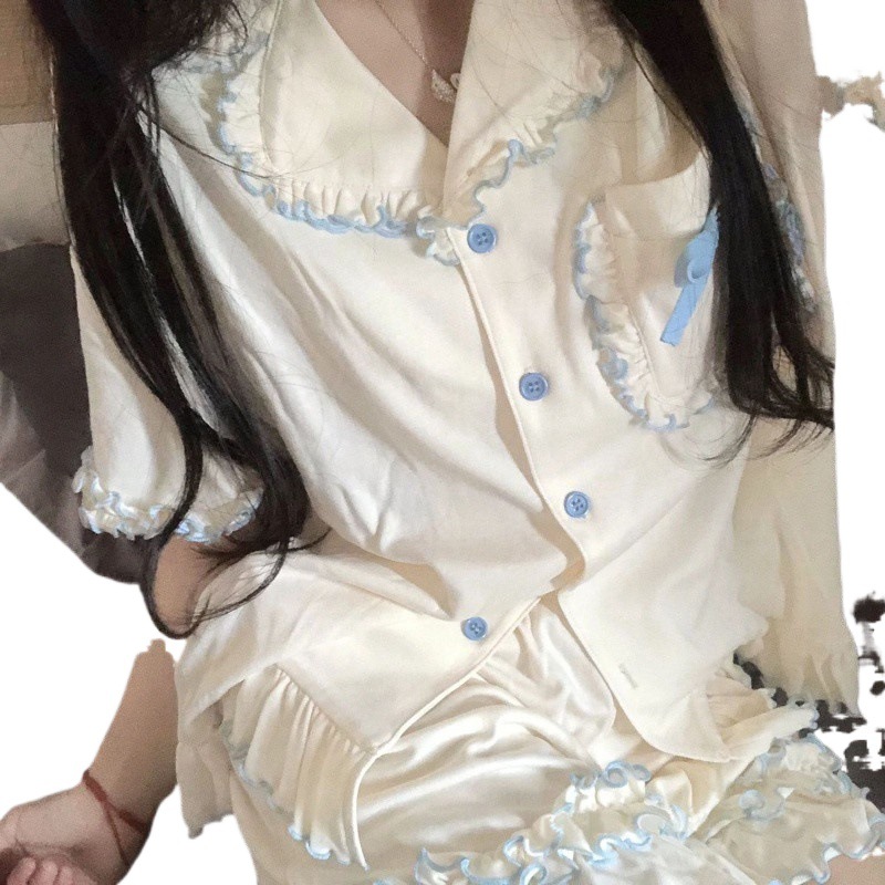 | nameOriginal | Small Pajamas Women's New Summer Cute Summer Thin Short-sleeved Shorts 2024 Internet Popular Home Clothes suit |