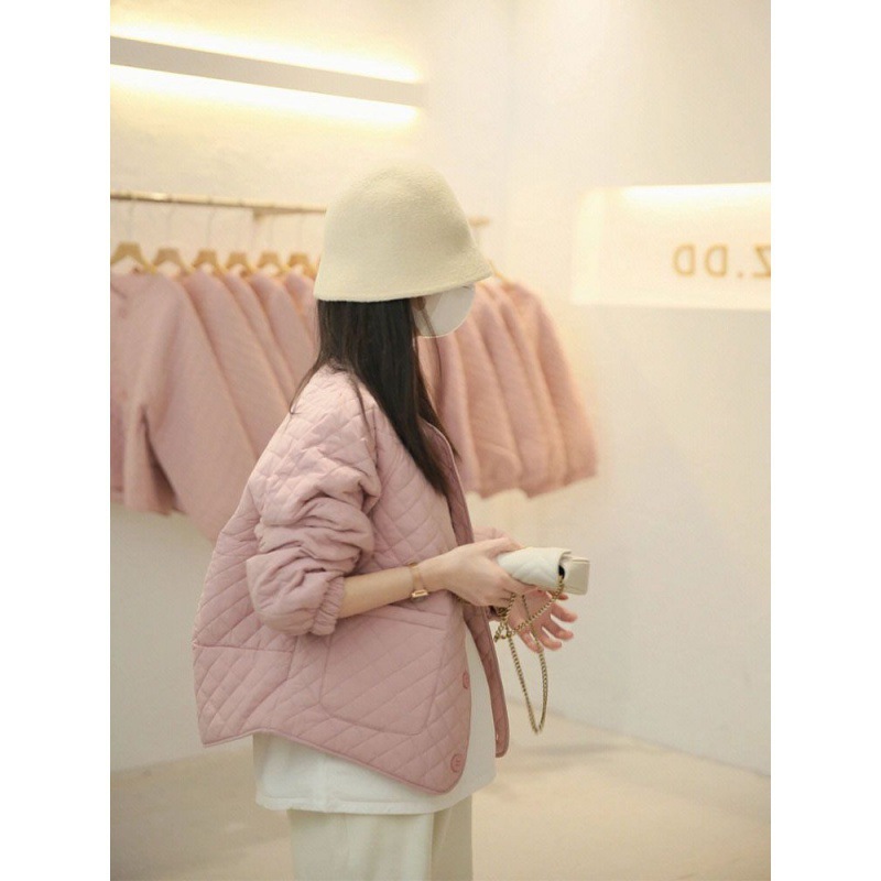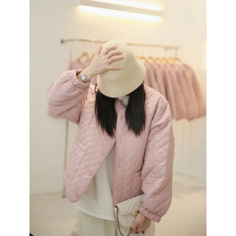 Small Pink Rhomboid Cotton-padded Coat Women’s Winter 2024 New Korean Style Quilted Top Women’s Coat