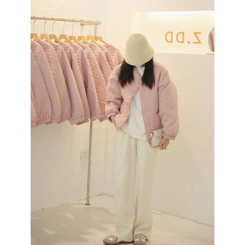 Small Pink Rhomboid Cotton-padded Coat Women's Winter 2024 New Korean Style Quilted Top Women's Coat