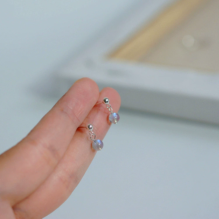 A small amount of goods natural blue -gray moonstone pink crystal yellow crystal sterling silver earring earrings mini small ear hanging