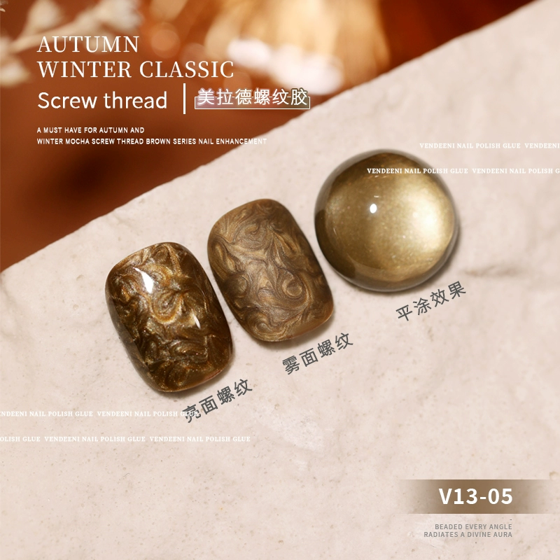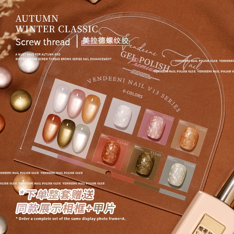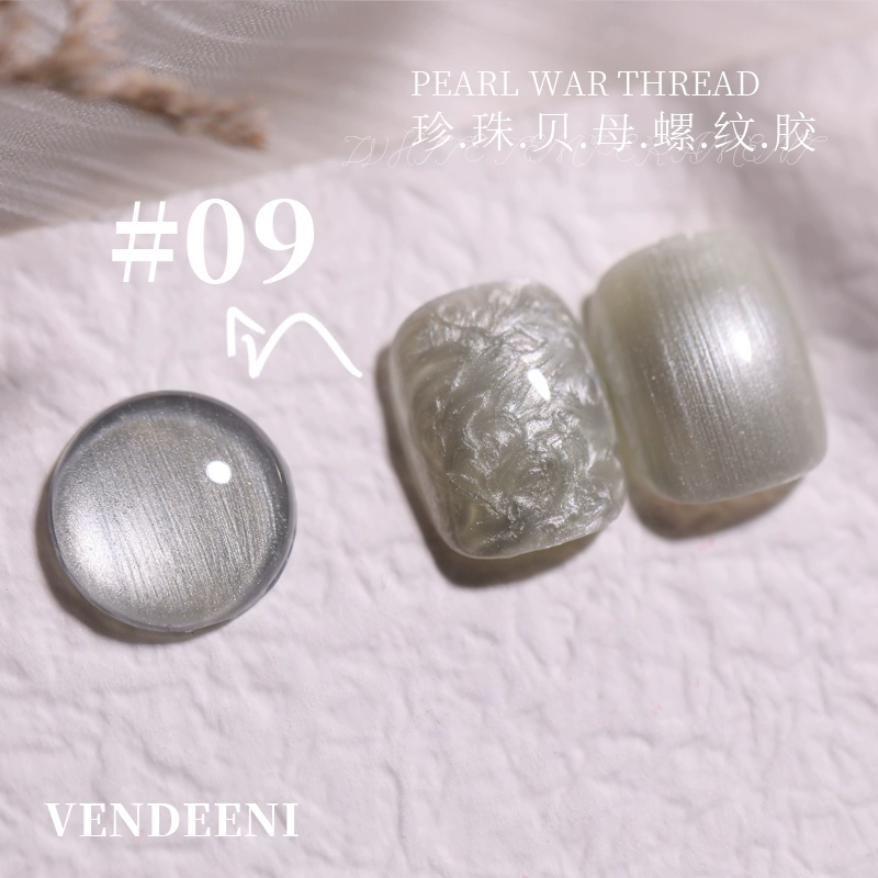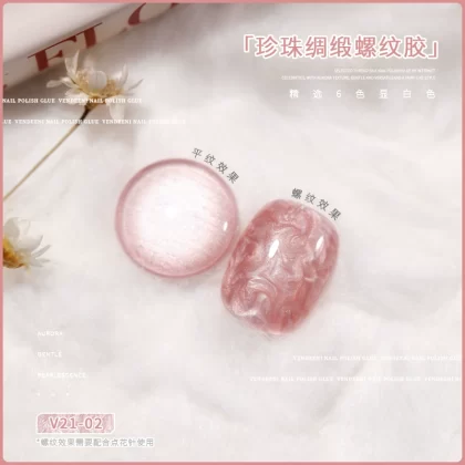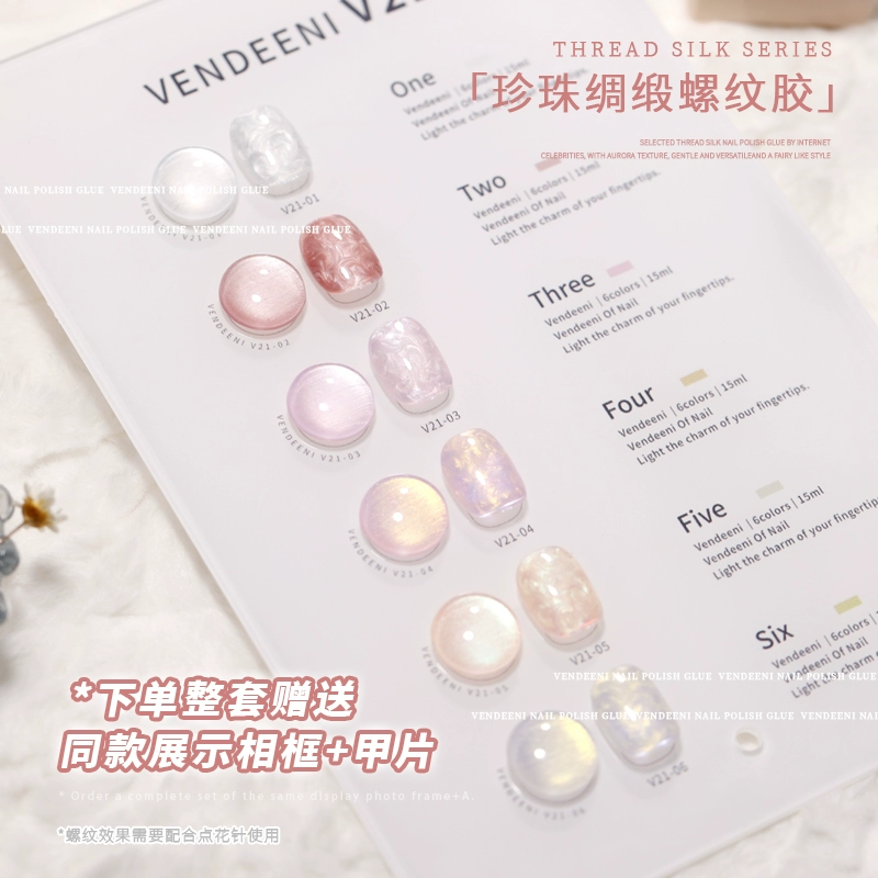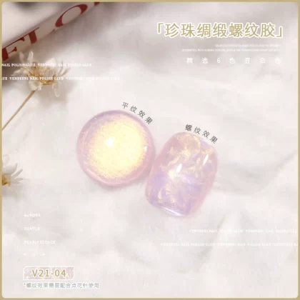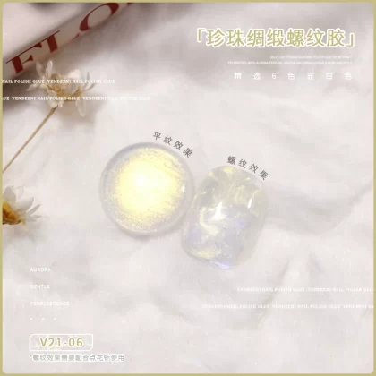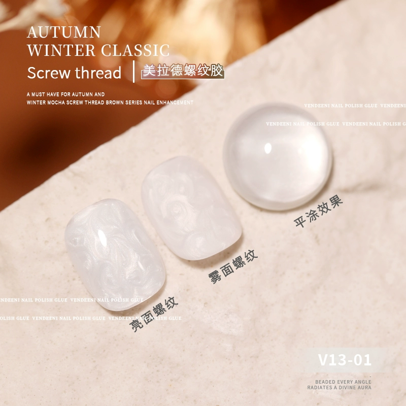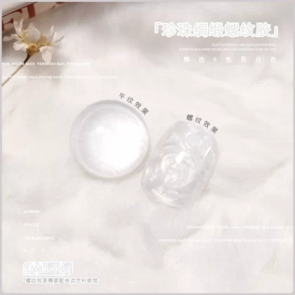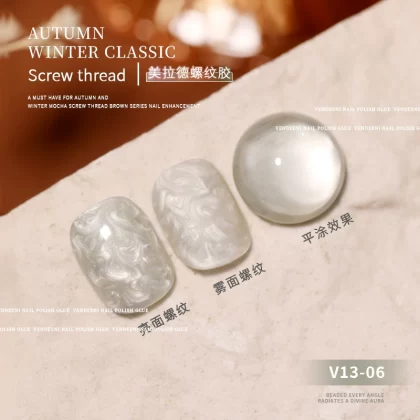 Small set of thread glue shells for fall and winter pearlescent white manicure