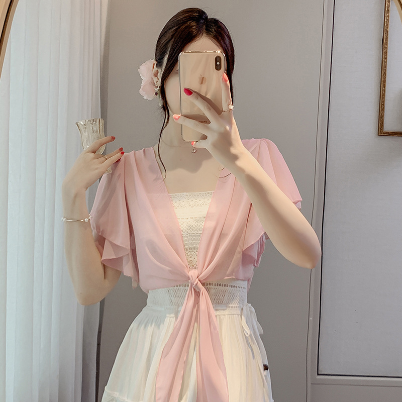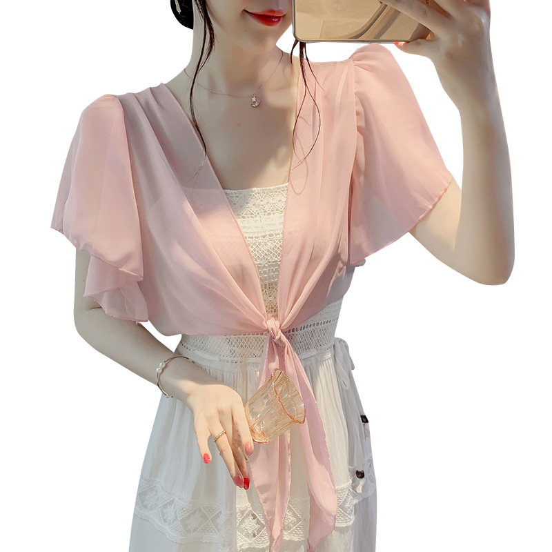 | nameOriginal | Small Shawl Coat Women's Spring and Summer 2024 New Korean-style Solid Color Small Shoulder All-match Chiffon Sunscreen Short Outer Wear |