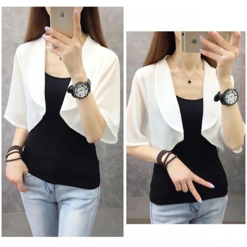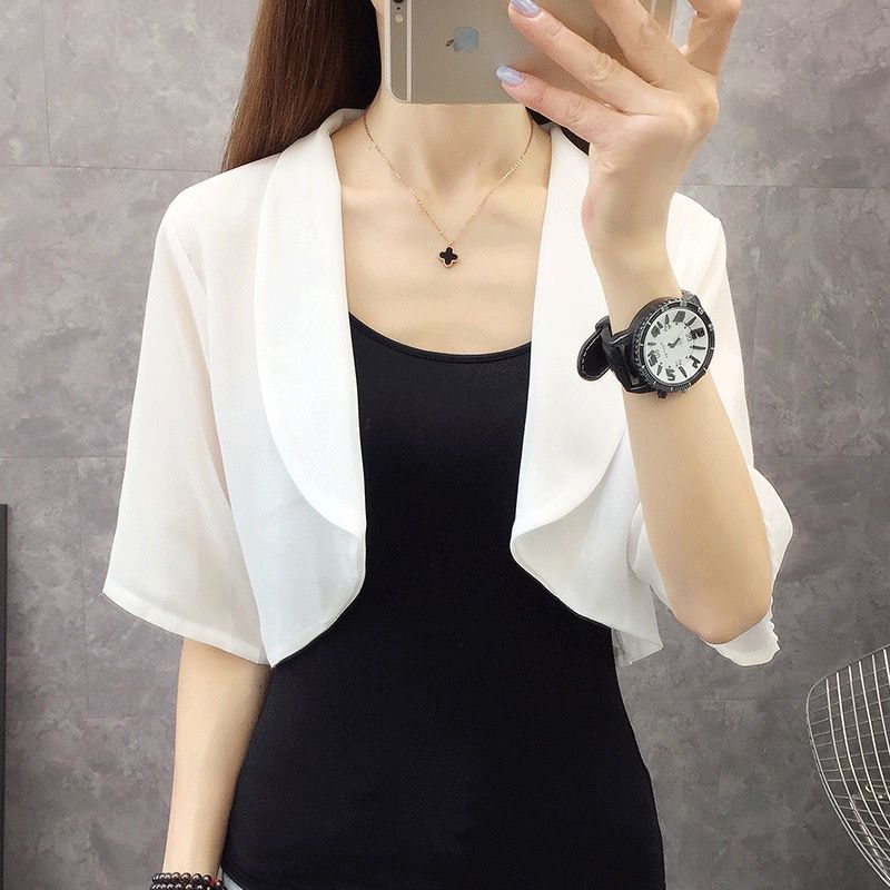 Small shawl ice silk chiffon sunscreen women’s short sleeve waistcoat new summer with strap skirt top short outer