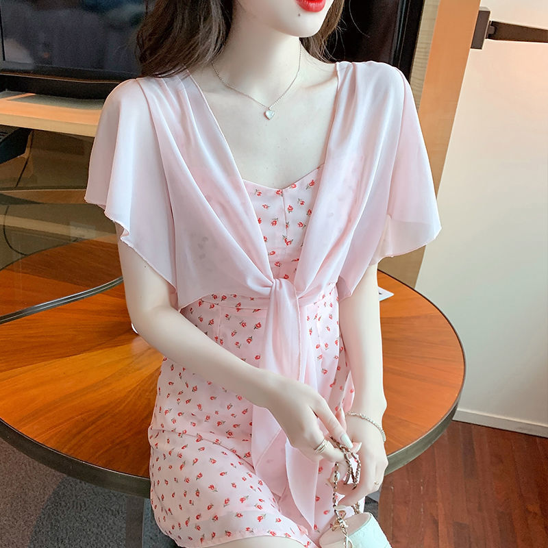 Small shawl women’s summer thin strap skirt outer cardigan top breathable chiffon sun protection clothing very fairy waistcoat