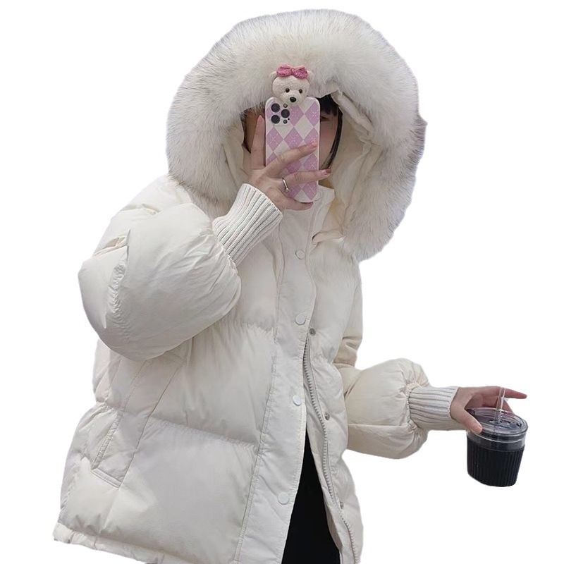 | nameOriginal | Small short down jacket for women winter 2024 new fashion Western style popular bread coat big fox fur collar |
