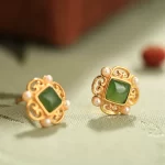 | nameOriginal | Small silversmith Hetian jade sterling silver earrings for women jasper pearl high-end ancient style light luxury jade square earrings |