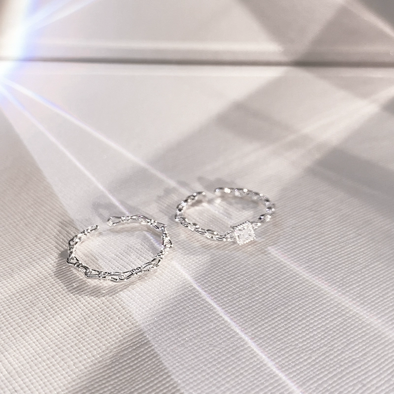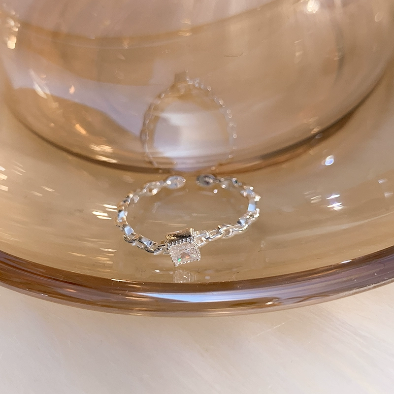 Small square diamond open ring for women niche design return plain ring for women light luxury high-end index finger ring plain ring