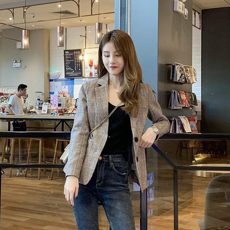 Small Suit Jacket Women's 2022 Spring and Autumn New Korean Style Student Short Cyber Celebrity Little Man Elegant Plaid Suit