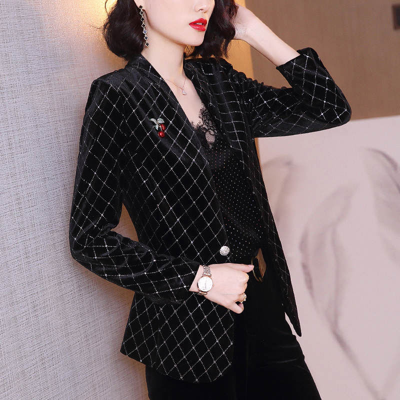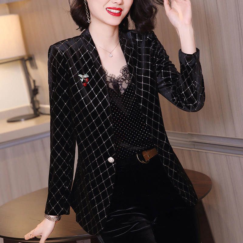 | nameOriginal | Small Suit Short Jacket Women's Spring 2024 New Casual Black Top All-match Long Sleeve Plaid Trendy Cardigan |